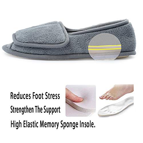 Git-up Women Diabetic Slippers/W Arthritis Edema Adjustable Closure Memory Foam House Shoes Open Toe Extra Wide 6