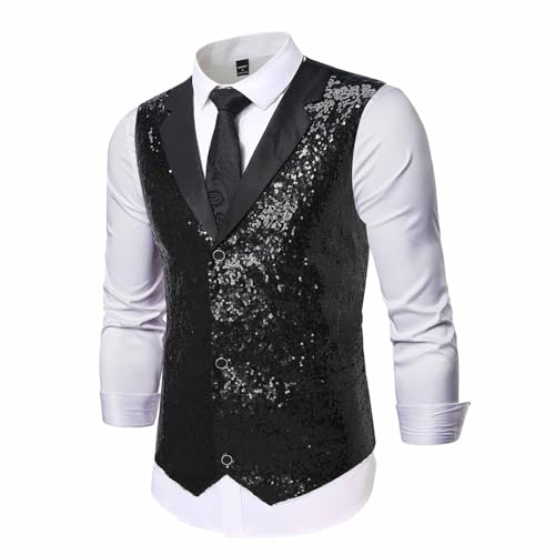 More information about Men's Sequin Suit Vest Fashion Shiny Waistcoat Notch Neck Formal Sparkly Glitter Dress Vests for Wedding Party Prom