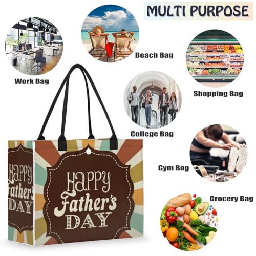 Father's Day Celebration Tote Bag for Women Large Beach Bag Reusable Tote Bags for Work Travel Beach Shopping