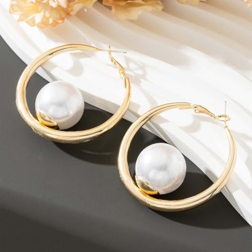 HOT ! Chunky Gold Big Pearl Drop Dangle Hoop Earrings for Women Trendy, Dainty Large Pearls Thick Round Circle Dangly Earring Exquisite Party Jewelry Gifts