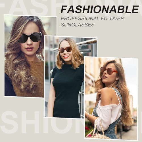 2 Pcs Polarized Fit-Over Sunglasses for Women, Large Round UV400 Protection, Trendy Cat-Eye Style 5