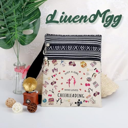 HOT ! Just Love Cheerleading Messenger Bag Small Ethnic Pattern Printed Adjustable Strap Crossbody Zipper Bag Phone Bag Wallet Cute Shoulder Handbag for Cheerleaders Teammates Coach Women