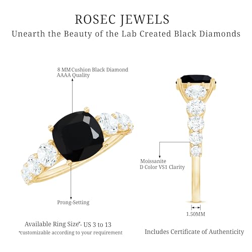 Lab Grown Black Diamond 8mm Cushion Cut Engagement Ring with Moissanite, Aaaa Quality, Black Diamond Solitaire Ring 5