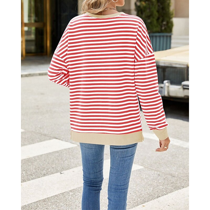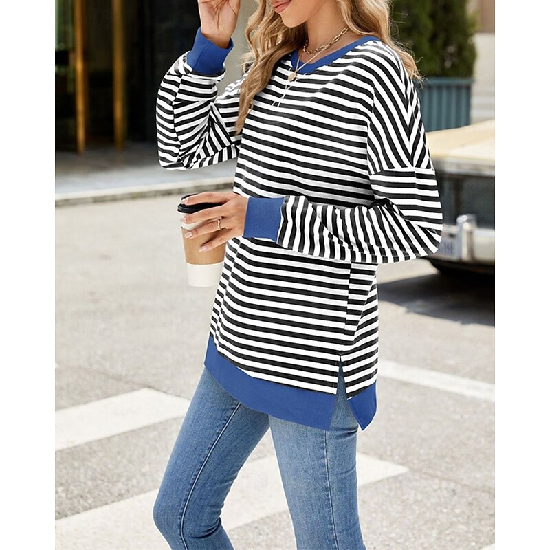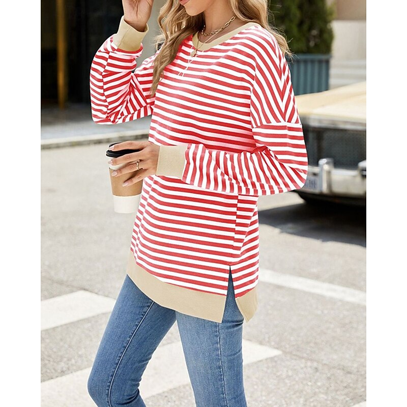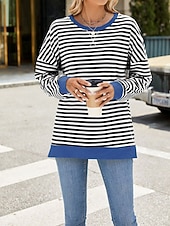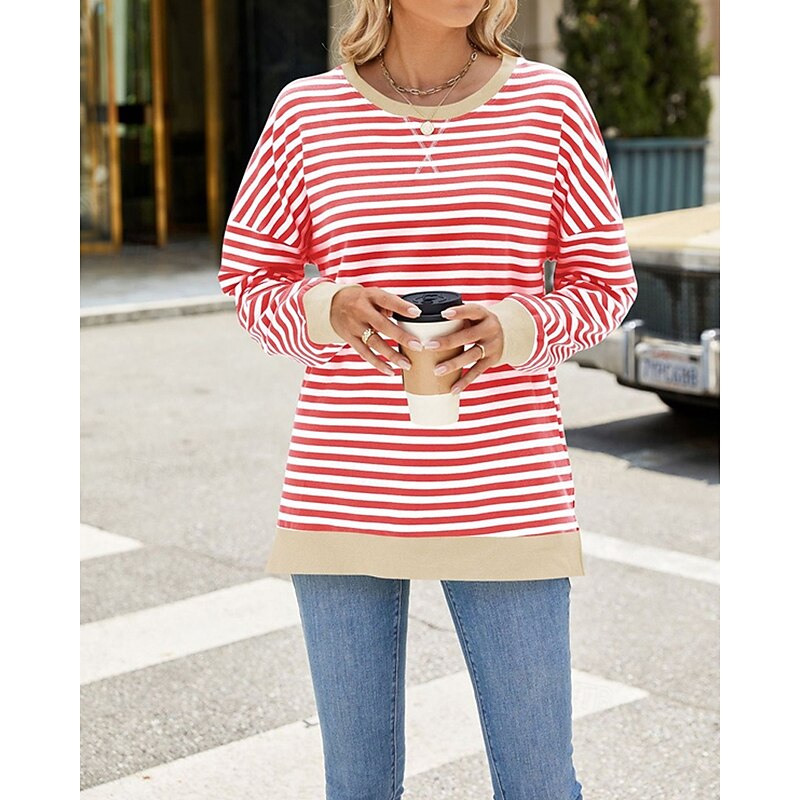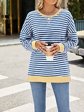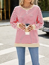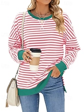 More information about Women's Pullover Striped Streetwear Casual Comfy Long Sleeve Crew Neck Regular Tops Street Holiday Going out Print Black Pink Red Blue Fall
