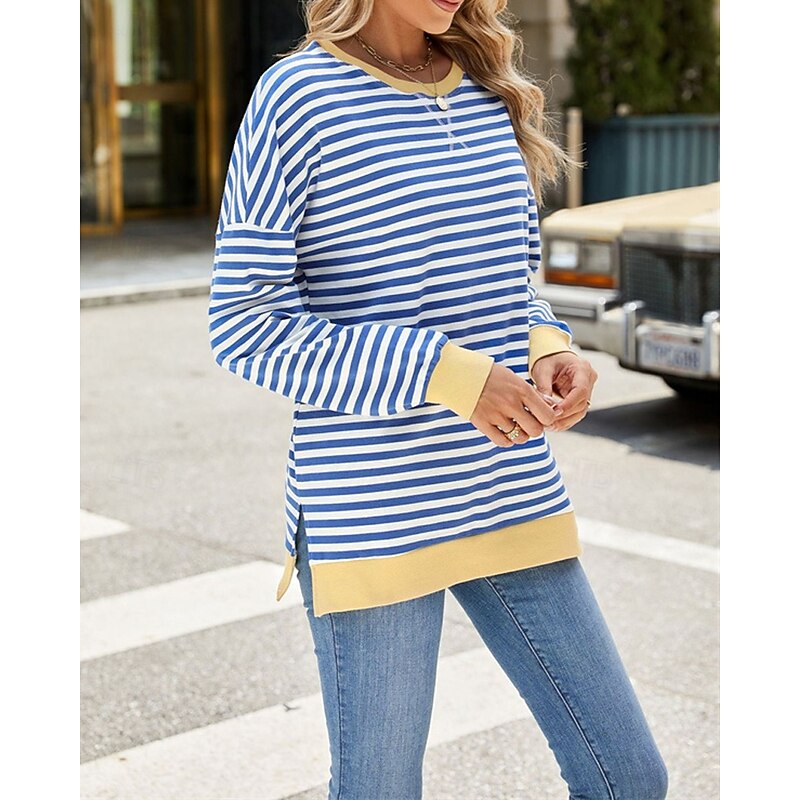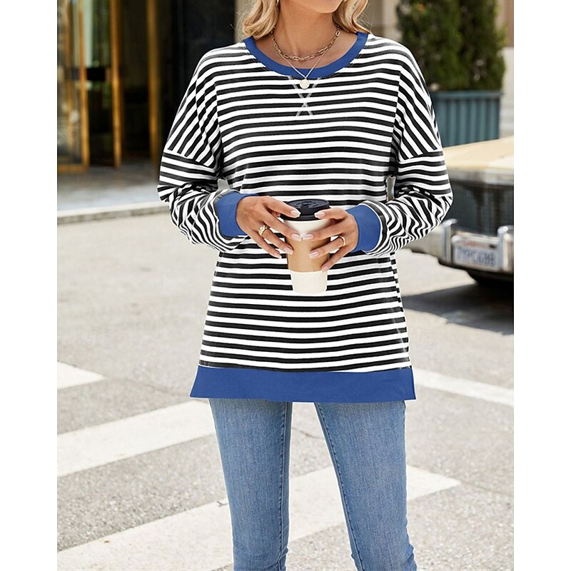 Women's Pullover Striped Streetwear Casual Comfy Long Sleeve Crew Neck Regular Tops Street Holiday Going out Print Black Pink Red Blue Fall 10