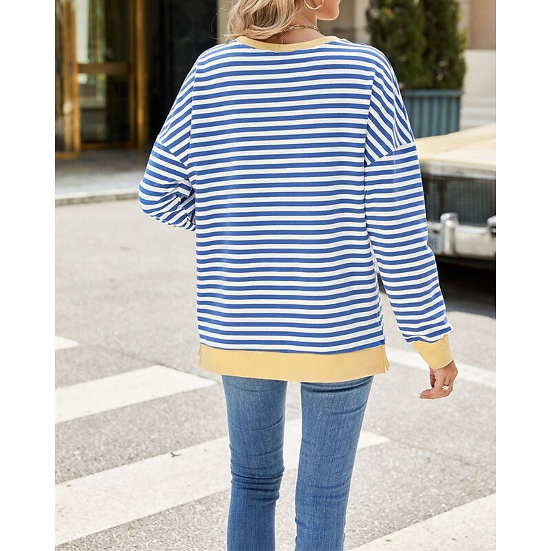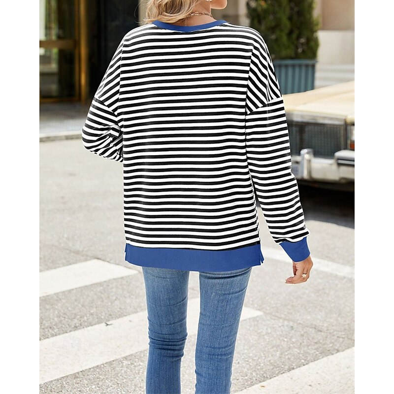 HOT ! Women's Pullover Striped Streetwear Casual Comfy Long Sleeve Crew Neck Regular Tops Street Holiday Going out Print Black Pink Red Blue Fall