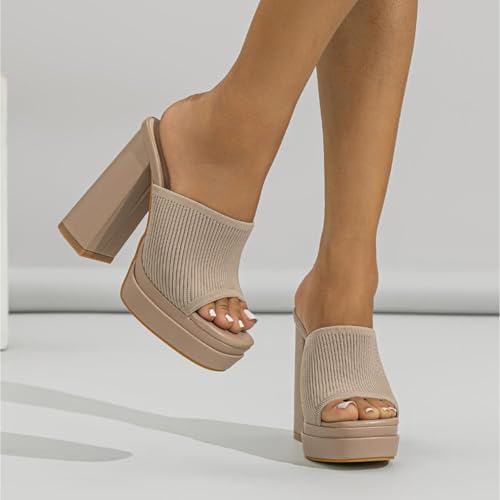 More information about Women's Knit Platform Chunky Heels Fashion Sandals Sexy Square Open Toe Slip-On Block High Heel Slippers Summer Party Dress Mules