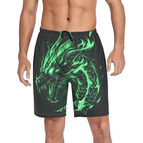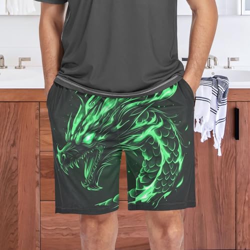 HOT ! Angry Green Dragon Pajama Shorts for Mens Pjs Bottoms Sleep Shorts Lounge Wear Pants with Pocket