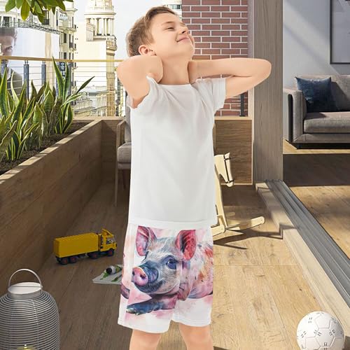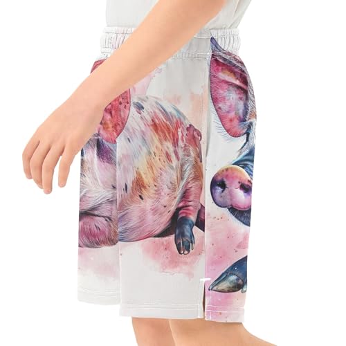 Funny Watercolor Cute Pig Youth Boys Shorts Summer Cute Athletic Shorts Elastic Waist Pj Shorts Kids 7-8 7