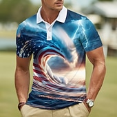 Men's American US Flag Spray Polo Short Sleeve Polo Shirts Lapel Casual Athleisure Festival Outfit 3D Print Buttons Summer Blue 3