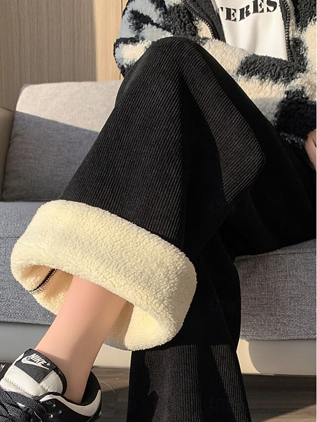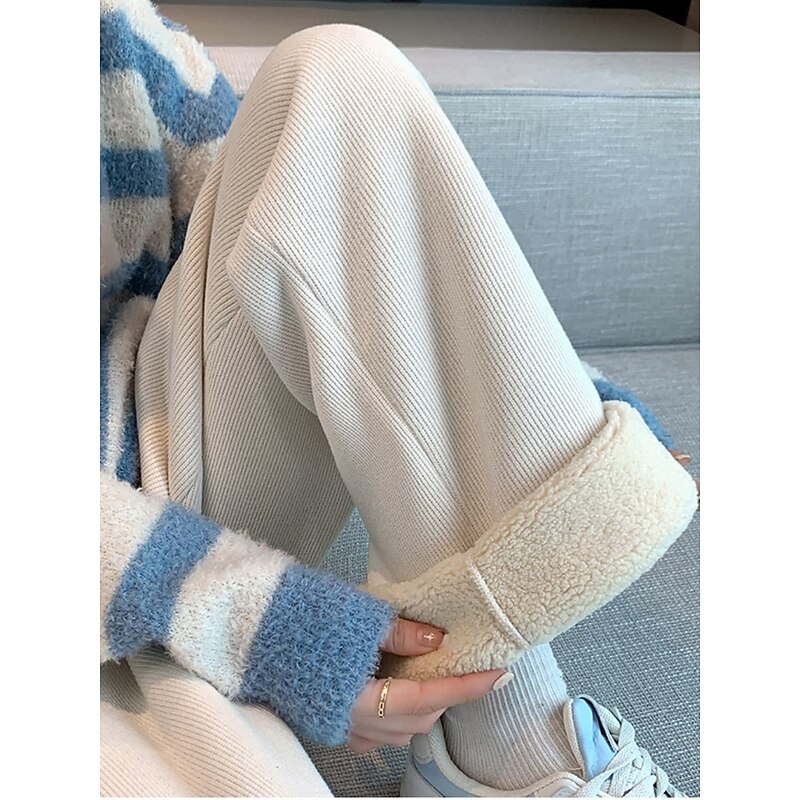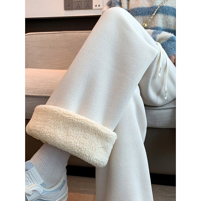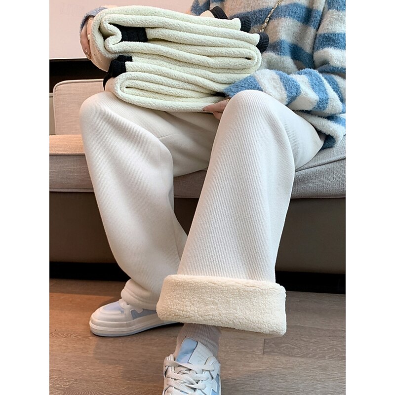 More information about Women's Sweatpants Fleece Pants Wide Leg Fashion Basic Casual Full Length High Waist Plain Pocket Elastic Waistband Comfy Soft Comfortable Stretchy Outdoor Street Black off-white Gray Spring Fall