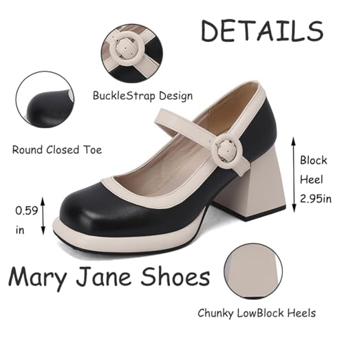 Sole material: RubberOuter material: Rubber, LeatherClosure type: BuckleMaterial: The upper of these Mary Jane pumps are made of high-quality PU material. The rubber outsole provides premium traction is wear resistant, slip-resistant sole protect your every step when standing in them to anywhere.Design: These Mary Jane shoes are designed with a 2.95-inch chunky block heel and a 0.59-inch platform at the front.The round closed toe silhouette elevates any look οΌThese low chunky heels have adjustable buckle strap to make the shoes more secure fit.Occasions: These chunky block heels are available in a variety of colors, For formal or informal occasions absolutely, such as office, shopping, party, wedding or dating.can also be worn on weekdays,can be easily matched with dresses, shorts, skirts, jeans and so on.Gifts: These cute Mary Jane chunky pumps are suitable for adults, teenagers,students and pumps-beginners. remarkably nice as back-to-school gifts, birthday, Saint Valentine's Day, Halloween, Thanksgiving Day, Christmas Day, Mother's Day and other holiday presents.Customer Service: If there are any quality problems with the products. Please feel freely to contact us, we will provide services in 24 hours worries.