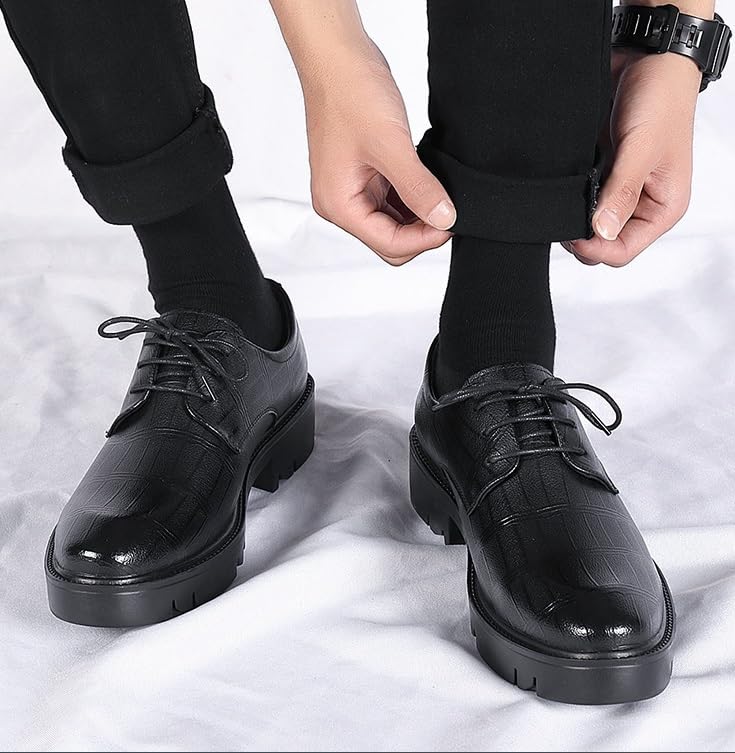 Men's Genuine Leather Platform Slip-On Oxfords Mens Retro Comfortable Business Height Increasing Non-Slip Softsole Walking Derby Shoes 6