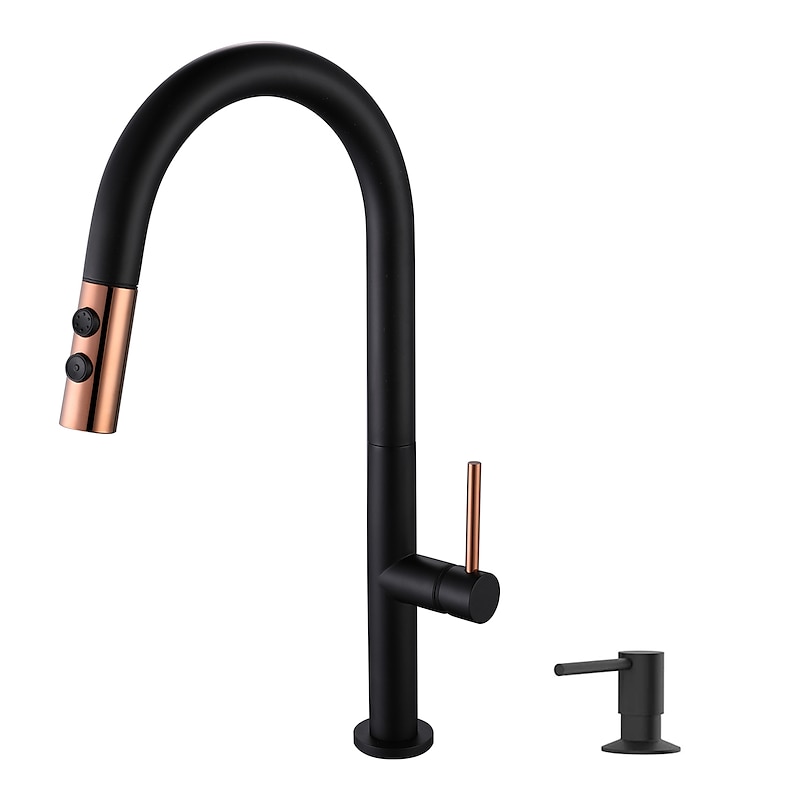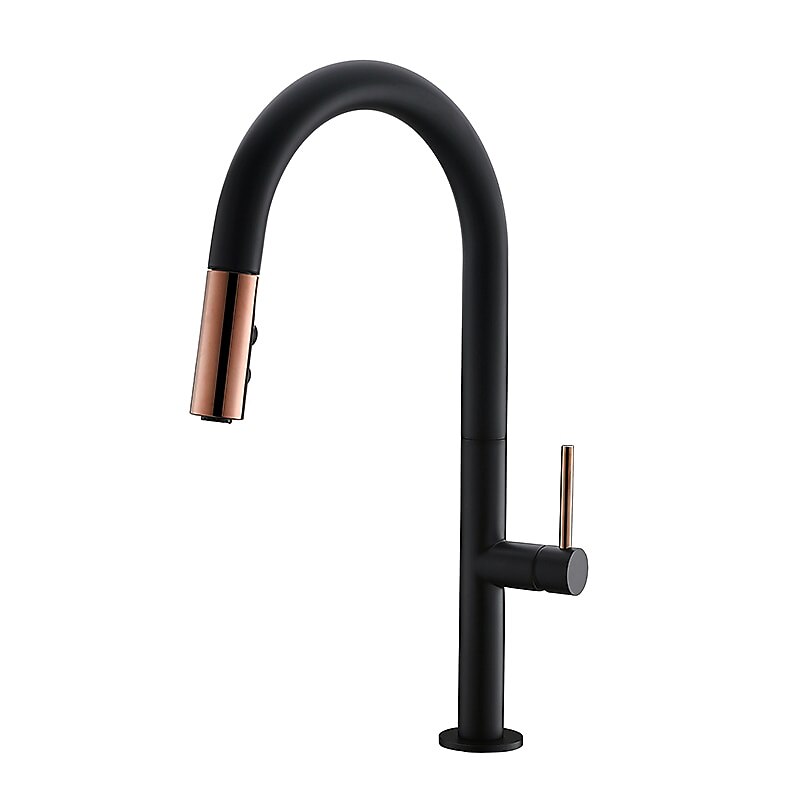 Kitchen Faucet,Rotatable Pull-out/­Pull-down Brass High Arc Nickel Brushed/Painted Finishes Single Handle One Hole Kitchen Taps with Hot and Cold Switch 11