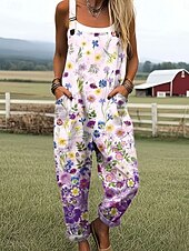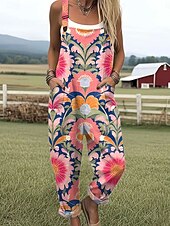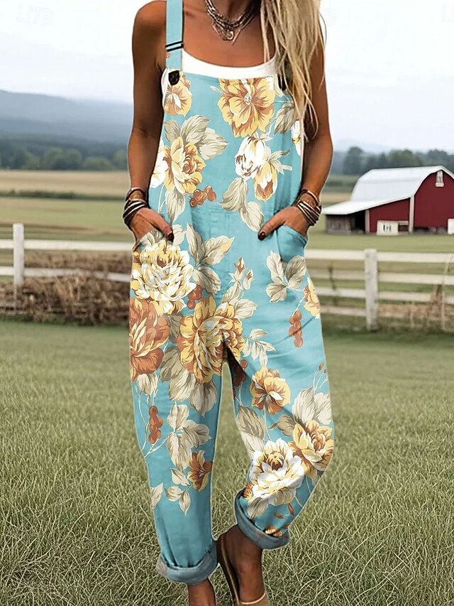 More information about Women's Dungarees Active Floral Sleeveless Straight with Pocket Vacation Daily Loose Fit Yellow Pink Blue Summer