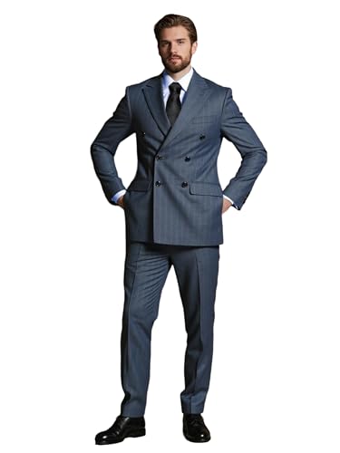 • Feature: The mens pinstripe tuxedo is consisting of a double breasted suit jacket and matching pants, with a formal and neat style. The suit jacket adopts a double breasted design, which adds a sense of layering and formality through the double breasted design; Moderate hem length, enhancing body shape; Shoulders are firm and slim, but not tight. Paired with pants of the same color scheme, the straight hemline enhances the overall sense of competence.