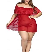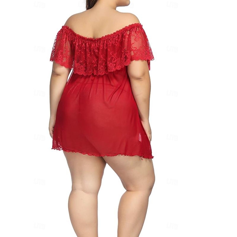 Highlights [Fabric:] Crafted from a stretchy spandex material, this nightgown offers a soft, sheer mesh fabric that allows for breathability and comfort, making it suitable for wear throughout all four seasons—spring, summer, fall, and winter. [Silhouette:] The nightgown features a sleeveless design with an off-the-shoulder neckline that complements its flowy silhouette. This provides a flattering fit that enhances natural curves while offering a seductive, yet sophisticated, appeal. [Design Highlights:] Delicate lace detailing adorns the off-the-shoulder neckline, adding an element of romance and elegance. The lace is intricately patterned, delivering a feminine and flirty touch. The design also incorporates a strap neckline for added allure. [Occasions:] Ideal for bedtime and home settings, this piece serves as alluring lingerie for intimate moments. Its seductive style is perfect for romantic nights, making it an exquisite choice for adults seeking both comfort and allure in their nightwear. [Size Range:] Available in a wide range of sizes to ensure a perfect fit for various body types. This includes sizes S through XL, as well as plus sizes ranging from 2XL up to 6XL, catering to the needs of different wearers.