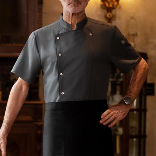 More information about Unisex Chef Shirt Short Sleeve Chef Coat for Men Breathable Cook Shirts Fashion Restaurant Kitchen Working Uniform