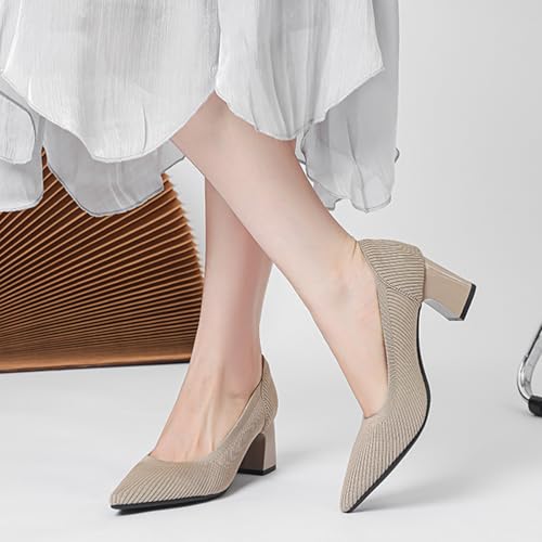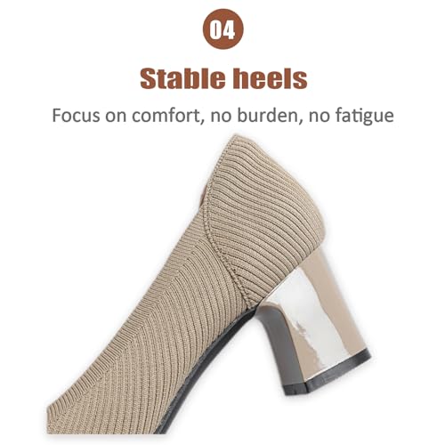 More information about Women's Knitted Striped Pointed Toe Chunky Heel Pumps Elegant Slip On Lightweight Breathable Stretchy Knit Comfort Mid Block Heel Dress Work Shoes for Office Casual Walking Dating