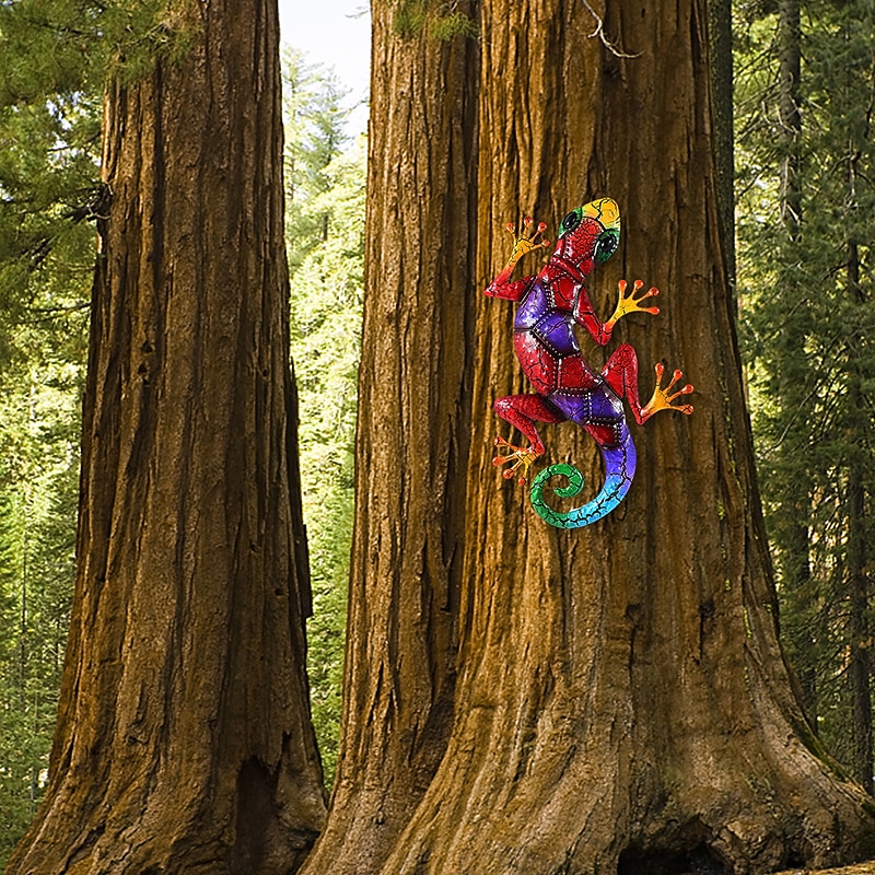 Outdoor Metal Decoration,Gecko Figurine,Hanging Gecko Wall Art Ornaments Lizard Wall Sculptures & Statues Decoration for Home Garden Farmhouse Porch Patio Lawn Fence Backyard 10
