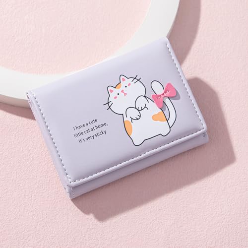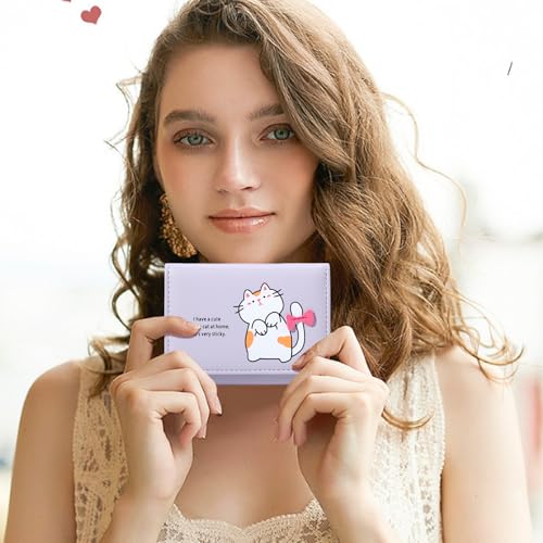 HOT ! Cute Cat Print Wallet for Girls Small Wallet with ID Credit Card Holder for Women (PURPLE)