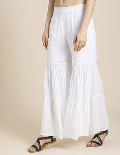 - ✅ Features: Elastic Waist Palazzos, Tiered, Regular Fit, Wide Leg, Full Length, Solid Colors Pattern.