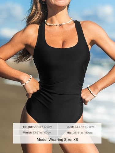 CUPSHE Women's One Piece Swimsuit Bathing Suit Scoop Neck Ruched Crisscross Back Tie Wide Straps 1