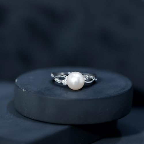 Certified 8 mm Pearl Engagement Ring for Women, AAA Quality, Natural Pearl Diamond Designer Ring (Ready to Gift) 6