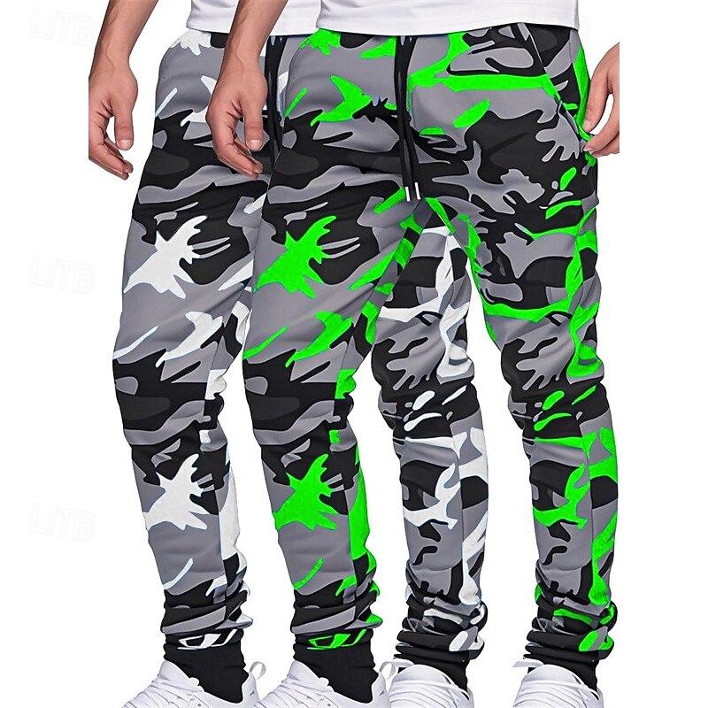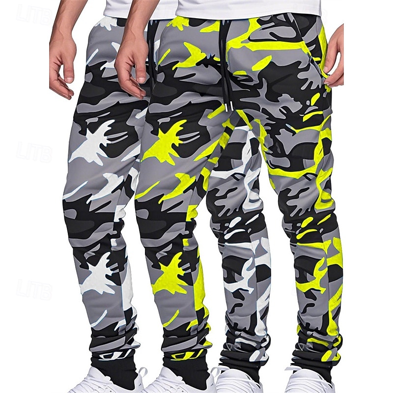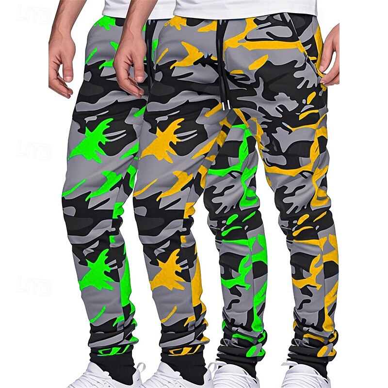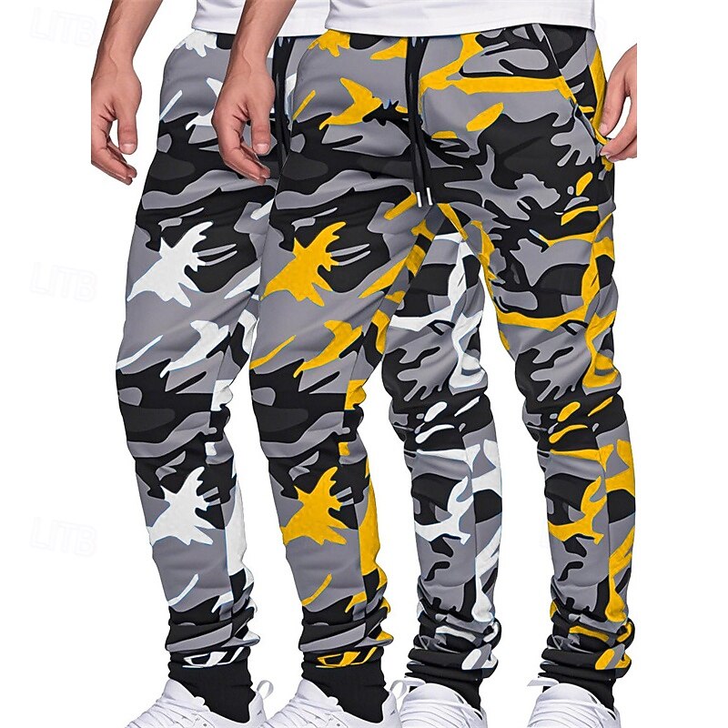 Multi Packs 2pcs Men's Yellow+Orange Sweatpants Joggers Elastic Waist Drawstring Camo / Camouflage Vacation Daily Wear Polyester Spring 23