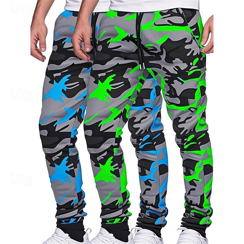 Multi Packs 2pcs Men's Yellow+Orange Sweatpants Joggers Elastic Waist Drawstring Camo / Camouflage Vacation Daily Wear Polyester Spring 12
