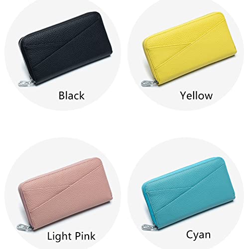 Women's Leather Wallet RFID Blocking Long Clutch Card Holder Organizer Zip Around Purse, Black, One Size 6