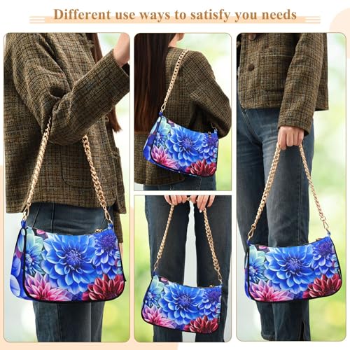 More information about Vibrant Dahlia Flowers Blue Clutch Handbag Womens Ladies Shoulder Bag Floral Zipper Evening Clutch Purse with Chain Strap