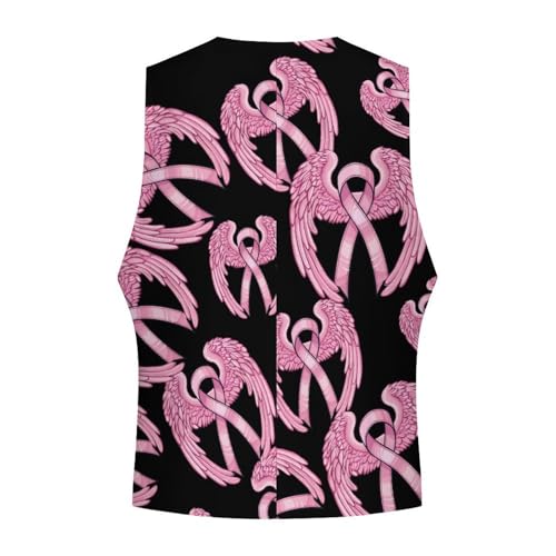 Breast Cancer Awareness Ribbon Men's Suit Vests Business Formal Dress V-Neck Waistcoat Tops with 2 Pockets 4