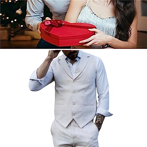 HOT ! Linen Vest for Men Slim Fit Single Breasted Summer Beach Wedding Groom's Waistcoat with Real Pockets for Daily Wear (Color : Gray, Size : Medium)