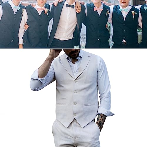 Linen Vest for Men Slim Fit Single Breasted Summer Beach Wedding Groom's Waistcoat with Real Pockets for Daily Wear (Color : Gray, Size : Medium)