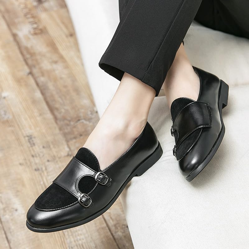 • Versatile Style: Monk strap loafers with double buckle and moc toe slip-on design for a fashionable yet casual look.