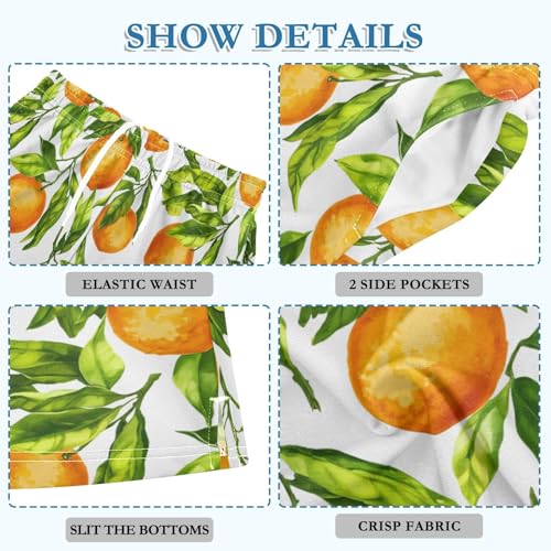 CHIFIGNO Oranges Green Leaves White Boys Baseball Shorts Wide-Leg Boys Cool Shorts for Summer Outings with Pockets XS