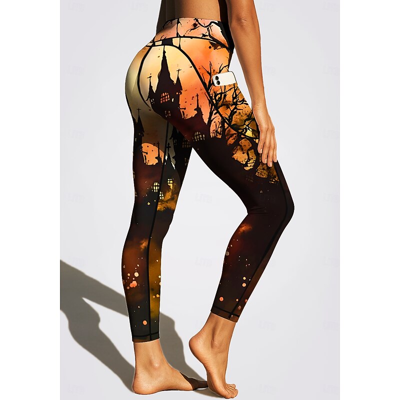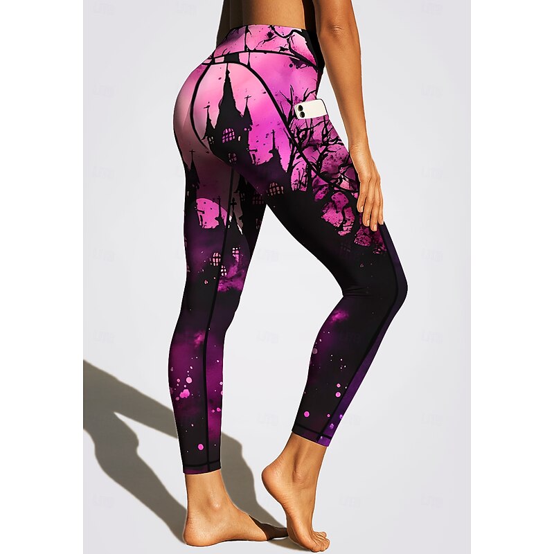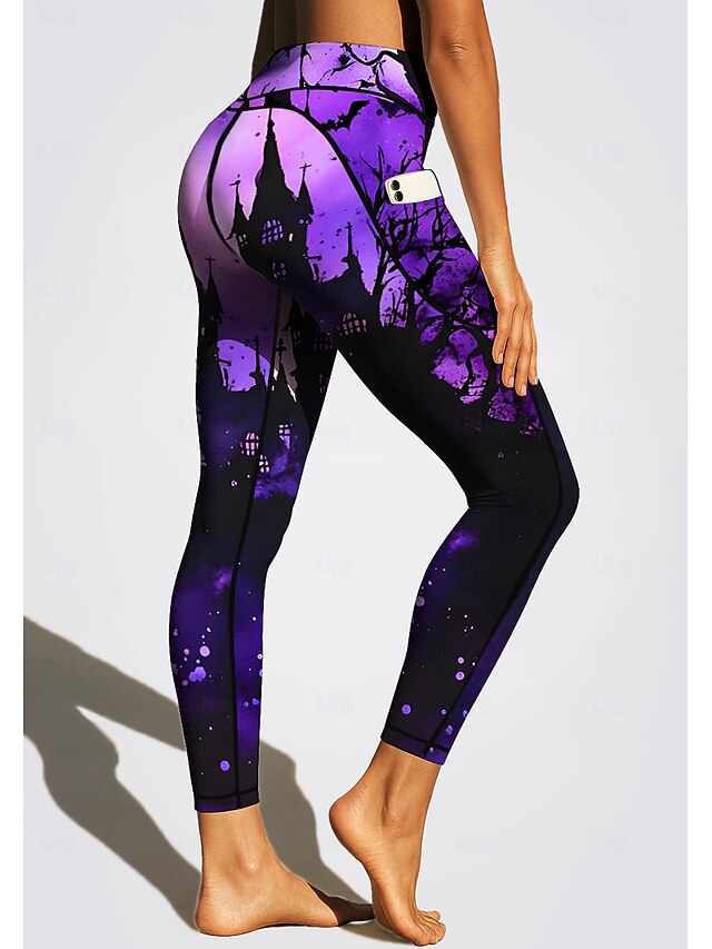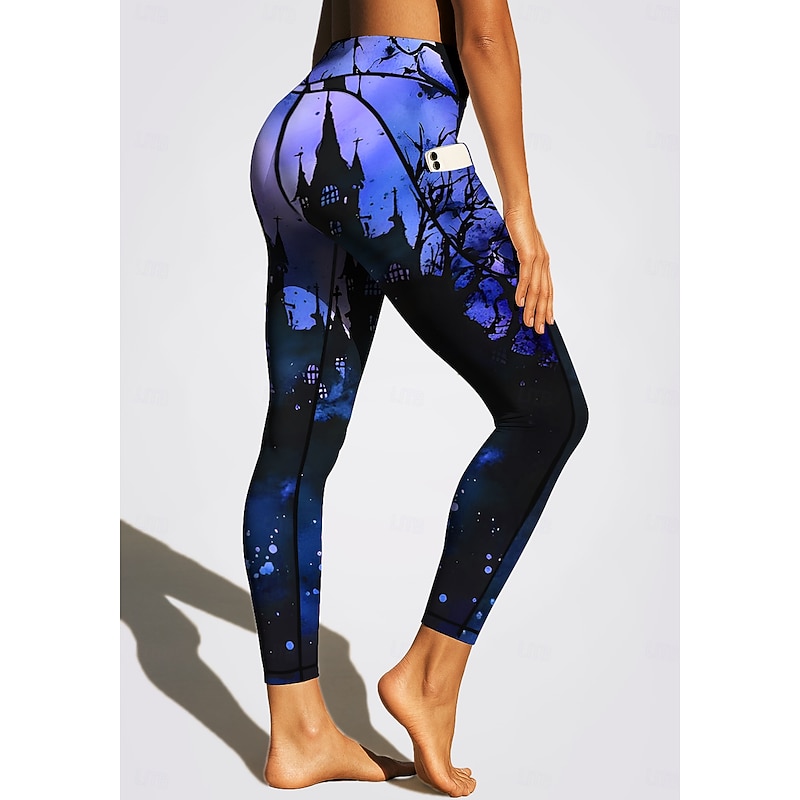 sought-after ! Women's Unisex pilates leggings fitness pants Gym Leggings Pockets Stamp Duty Side Pockets Pilates Gym Gym Workout Pants Tights Leggings Graphic Halloween Galaxy Star Print Amethyst Black Blue Sports