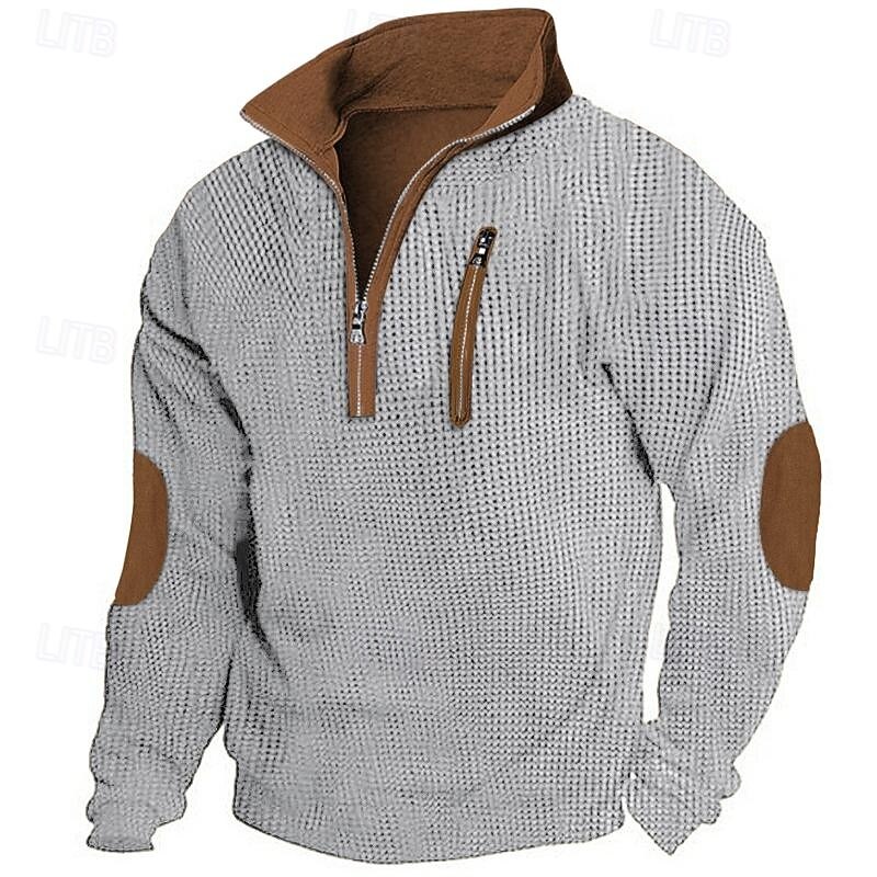 More information about Men's Waffle Shirt Tee Top Long Sleeve Shirt Long Sleeve Quarter Zip Spring & Fall Cross-Seasons Patchwork Daily Casual Street Style Patchwork Zipper Outdoor Street Causal Black Navy Blue Khaki Top