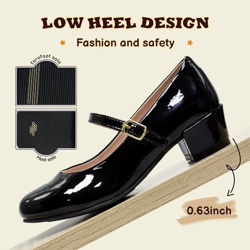 Fabric type: Low heel measures approximately 1.45 inches, making girls' each step steady. Lightly padded footbed helps provide soothing comfort and support.Sole material: RubberOuter material: Faux LeatherClosure type: Hook & LoopROUND TOE: Girls dress shoes with round toe provide enough space for little princess, making kids comfortable and cozy.HOOK LOOP CLOSURE: Convenient hook and loop design makes girls' mary jane shoes adjustable and easy to slip on/off for kids girl.COMFORTABLE & ELEGANT: Little/Big girl dress shoes for girls with pure shiny patent leather upper and low heels keep little ones to walk comfortably and gracefully.NON-SLIP OUTSOLE: Low heel dress shoes for girls with textured non-slip rubber soles provide better grip and balance on any surface.GIFTS & OCCASIONS: Girls uniform shoes as perfect gifts for elementary students. Great school shoes for girls to school. Kids girl dress shoes perfect for wedding, flower girls, church, party and performances.