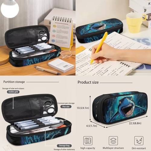 Coldinair Cool Shark Backpack for Boys Kids Backpack with Lunch Box and Cool Pencil Case Large Capacity Bookbag for Elementary Middle School Boys 17inch Lightweight Bookbag with Front Pocket 3