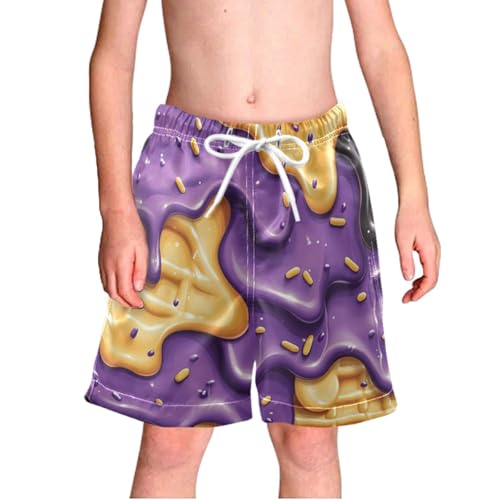 Pigsaly Boys' Swim Board Shorts Black Yellow Purple Milk Ice Cream Boy's Swim Trunks Kids Swimwear M