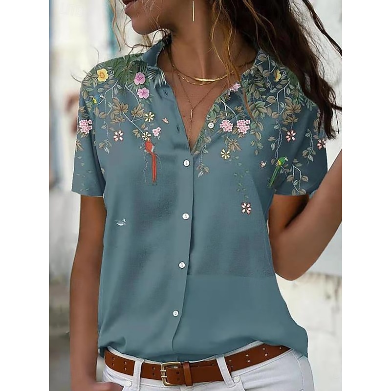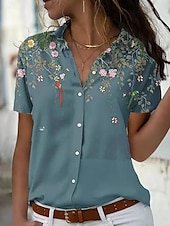 More information about Women's Shirt Blouse Floral Stylish Casual Short Sleeve Shirt Collar Regular Tops Daily Buttons Print Light Green Pink Blue Summer Spring