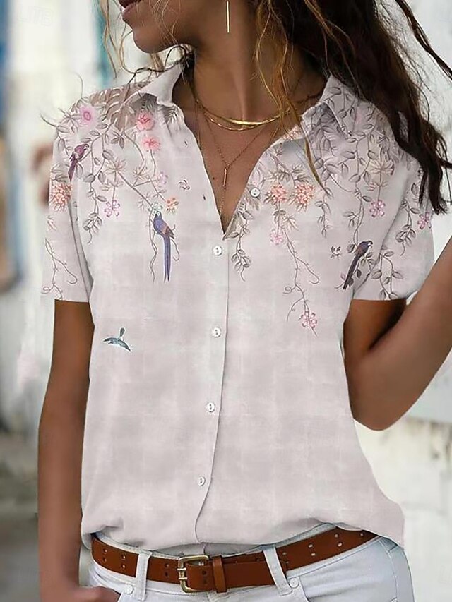 HOT ! Women's Shirt Blouse Floral Stylish Casual Short Sleeve Shirt Collar Regular Tops Daily Buttons Print Light Green Pink Blue Summer Spring