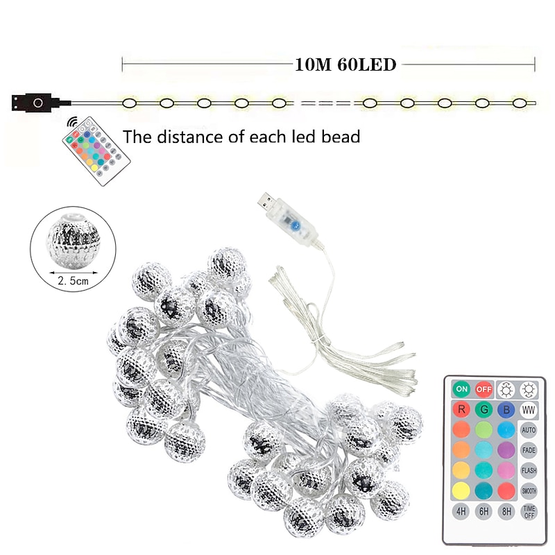 $43.99 - 10M Light String Iron Morocco Ball Lamp Fairy Globe Lamp 16 Color Change Switching Remote Control Christmas Holiday Lights Creative Party Holiday Dimming Timing USB Power Supply 1 set 2025. Shop for cheap USB String Lights online? Buy at lightinthebox.com on sale today!