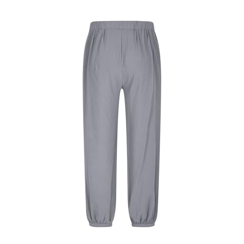 HOT ! Men's Casual Linen Pants Elastic Waist Drawstring Beach Summer Wide Leg Lounge Pants Lightweight Linen Trousers Loose