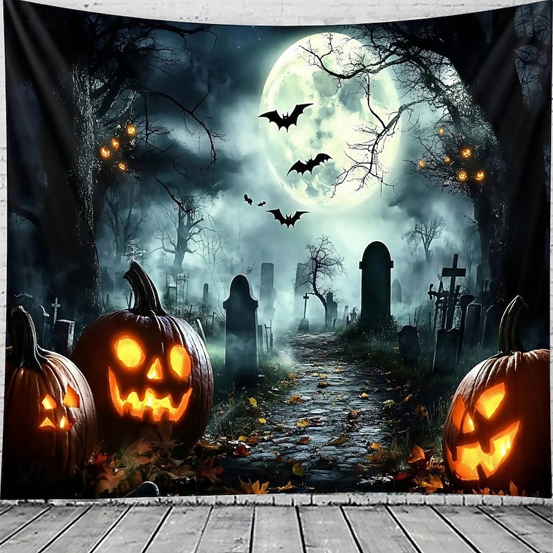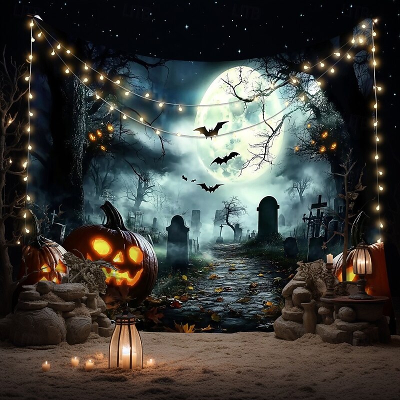 $13.99 - Halloween Cemetery Wall Tapestry Backdrop – Spooky Graveyard Scene with Full Moon and Haunted Tree, Gothic Wall Hanging for Home, Party, Photography 2025. Shop for cheap Halloween Wall Tapestries online? Buy at lightinthebox.com on sale today!