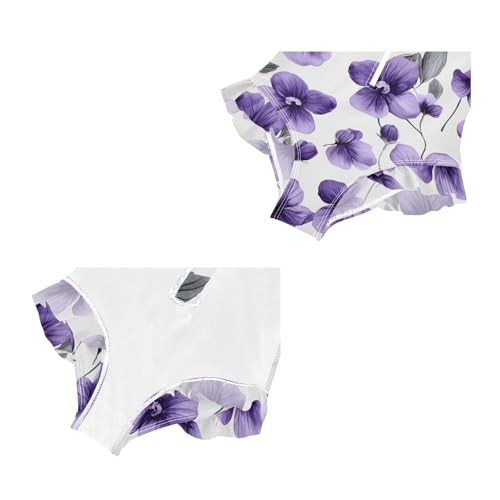 One Piece Swimsuits for Girls Quick Dry Rash Guard Zipper Swimwear, Violets Floral White Purple 3T 5