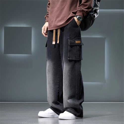 More information about Men Wide Leg Washing Jean Pants Trousers Neutral Solid Color Loose Casual Pocket Cargo Pants