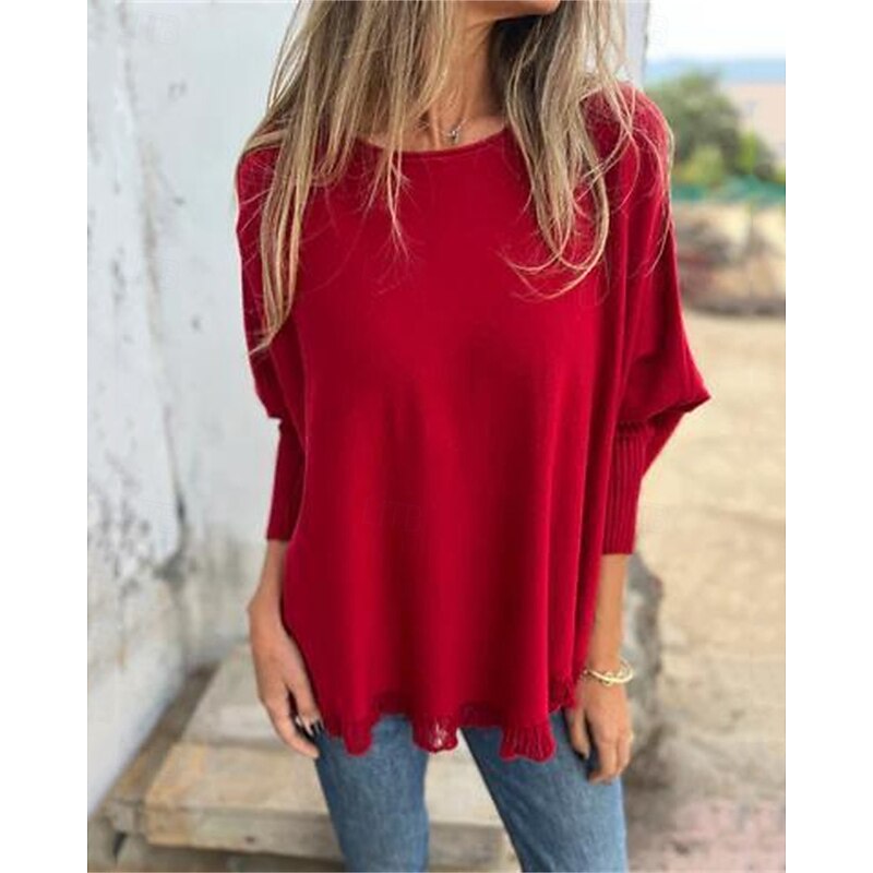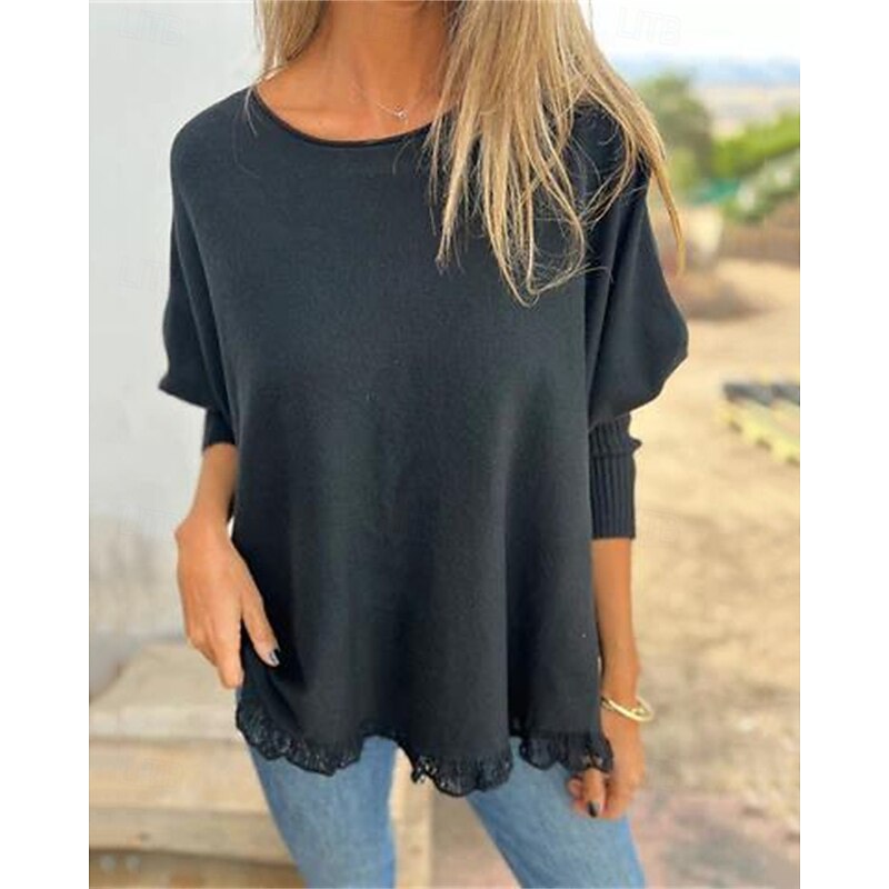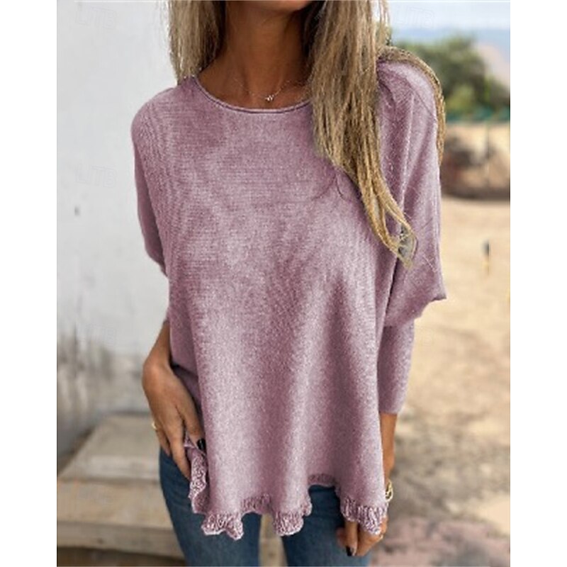 Women's Sweater Pullover Daily sleek Casual Solid Color Ribbed Crew Neck Knitted Long Sleeve Regular Tops Knit Daily Holiday Going out Black Pink Fall Winter